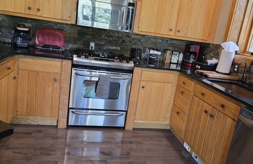 Large pine trees surrounding the house and lots of wildlife to experience. Bear Cup Coffee is just down the street and has great coffee, drinks & eats. The patio area is great for morning coffee or an evening BBQ.