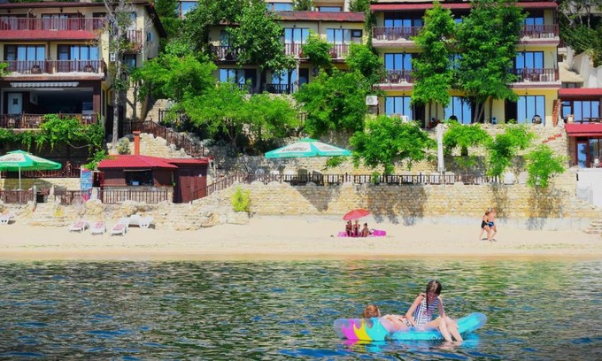 The family-run Morski Briag Hotel enjoys a quiet location right on the beach of the Black Sea, about 0.9 mi from the center of the Golden Sands resort. All rooms have a sea-view balcony. Free WiFi is available throughout the property. Air-conditioning and a cable TV are available in all rooms of the Hotel Morski Briag. Morski Briag Hotel's day bar is an inviting place to relax while sipping a drink and enjoying the sea views. The restaurant serves a wide range of Bulgarian specialties made from organic ingredients, where guests can enjoy breakfast, lunch and dinner. Located within walking distance of a major airport bus route, the Morski Briag Hotel is also reachable without a car. Varna is about 12 mi away.