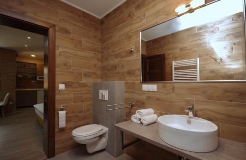 Mosoly Deluxe Apartman offers accommodations in Gyula, a 12-minute walk from Castle of Gyula and 1.2 miles from Gyula Train Station. There's a private entrance at the apartment for the convenience of those who stay. The apartment features rooms with air conditioning, free private parking, and free Wifi. The units come with parquet floors and feature a fully equipped kitchenette with a microwave, a dining area, a flat-screen TV with satellite channels, and a private bathroom with a bath or shower and a hair dryer. A fridge, a stovetop, and kitchenware are also available, as well as a coffee machine and a kettle. At the apartment complex, every unit is equipped with bed linen and towels.