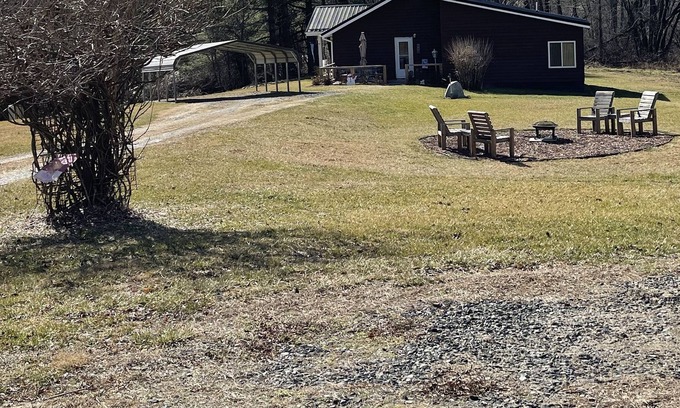 Very large open yard for outdoor fun and games. Enjoy the fire pit with chairs and tables on those cool evenings. Covered porch with rockers and a bench. Deck with patio table and gas grill. Covered carport for one car but lots of room for parking otherwise.