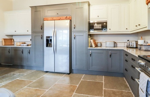 Amenities: Underfloor heating throughout run by a ground source heat pump. Double oven, hob, microwave, American fridge/freezer, washing machine, tumble dryer, dishwasher and wine cooler. 4 x Smart TVs and WiFi. Fuel, power and starter for woodburning stove inc. in rent. Bed linen and towels inc. in rent. Highchair, travel cot and stairgate available on request. Front patio with furniture. Off-road parking for 4 cars. One well-behaved dog welcome. Sorry, no smoking. Shop 1.4 miles and pub 0.7 miles. Note: Dogs must be kept on a lead due to livestock. Note: The property is up a track on farm, cows and other wildlife roam freely across these fields, so please be prepared to jump out to open the gate and then shut it behind you, if the weather is poor this may lead to the track becoming particularly muddy.