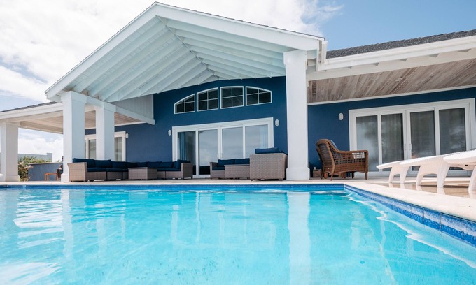This stunning beach front estate is now available for rent! Simply the most gorgeous views on the island! Heated Pool and back up generator. Guests love the one storey layout with great access to the ocean and pool from every bedroom. Located on a stunning private beach just 8 miles from Georgetown, the capital of Exuma. Seven large bedrooms which are beautifully decorated. Soaring 27' ceilings in the main great room with state of the art fully stocked kitchen. This property is perfect for entertaining while offering a safe and perfect place for kids to explore the ocean and surrounding area. This home is simply unlike anything you have ever experienced!