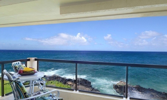 MOST STUNNING Oceanfront Views, A/c, Washer/Dryer, Kitchen, Elevator, Beach 0.5m | Condo in Koloa