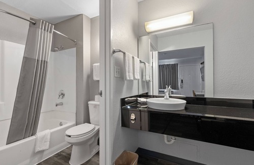 Motel 6 San Diego, CA - North offers 65 accommodations, which are accessible via exterior corridors. 32-inch LCD televisions come with cable channels. Bathrooms include shower/tub combinations.