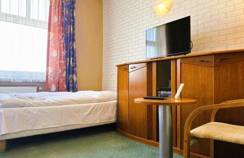 The 3-star Motel Petro is located in Torzym, 19 mi from the border crossing in Świecko. It offers air-conditioned rooms with cable TV and a private bathroom. It also offers private parking and easy access to the A2 motorway. All rooms at the Petro are simply furnished and come with a work space and a telephone. Wake up service is provided. Breakfast is served every morning at the on-site restaurant, which specializes in Polish and European dishes. Guests can enjoy a drink at the bar. Front desk staff is available 24 hours a day. Guests can relax on the terrace or arrange for the barbecue. Rzepin is within 6.2 mi and Świebodzin is 19 mi from the motel.