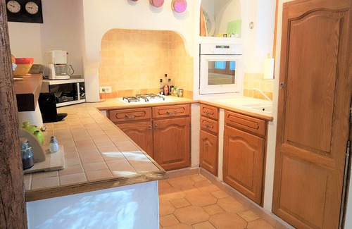Les Cigales is more than a rental cottage as Gaby and Guy have put many touches to make it feel like home, with fresh provencal fabrics, everything you would need in a kitchen (blender, food processer, salad spinner, loads of dishes and glasses, pots and pans of every size, toaster, microwave, two refrigerators, five burner gas cooktop, convenction oven and more and even more!