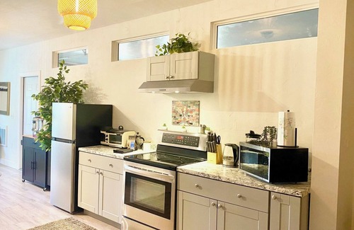Your unit has an open floor plan with a well appointed kitchen, living room, 2 bedrooms with queen size memory foam mattresses, 1 bathroom with standard size shower. The kitchen has a nice view of Black Butte and plenty of light which can also be used as a work space if you're working remotely. You will have over 200mpbs of high speed internet, and since most guests use their own devices for streaming and entertainment we do not have a TV. The tap water here has been tested and is completely safe to drink. As a treat, you will be provided with crystal clear spring water from the mountain, coffee made locally here in Mount Shasta, and a variety of Yogi teas for you to enjoy.
