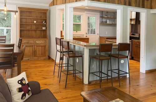 Surrounded by towering trees and private hiking trails, this is the ultimate nature lover’s paradise. With minimal light pollution, the night sky comes alive—perfect for stargazing from the hot tub or gathered around the fire pit with loved ones.