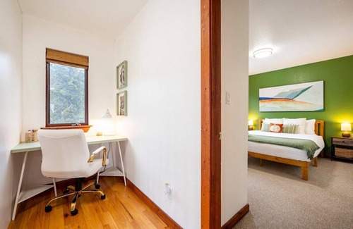 For entertainment, there's a 55' Smart TV with complimentary Netflix and YouTube Premium subscriptions. Stay connected with fast Wi-Fi and a dedicated workspace. We've stocked the cabin with a variety of board games for all ages, ensuring endless fun and laughter.