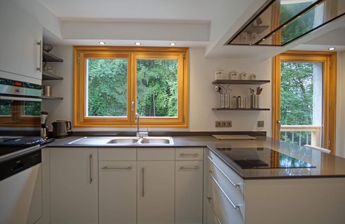 The Kitchen has recently been renovated. It is clean and bright and has plenty of space for storage, as well as a large fridge, there is also a second fridge/freezer available for use. The kitchen is fully equipped and has everything that you may need for your dining experience, including fondue and raclette sets.