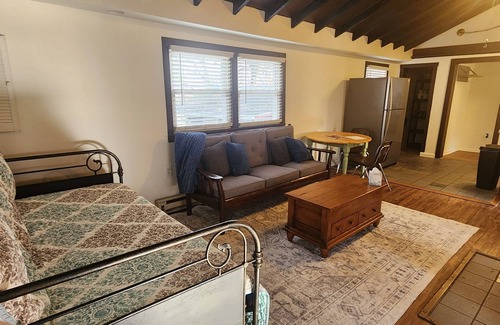 Escape to this cozy cabin in the picturesque Catoctin Mountains. This retreat features 1 bedroom with a queen bed, a wonderful living room with a twin size daybed, and a full bathroom. Relax in the clawfoot tub. With amenities like AC (May-September), WiFi, and a washing machine/dryer, guests can unwind in comfort. Kickback, relax, and enjoy everything Thurmont and our cabin has to offer.