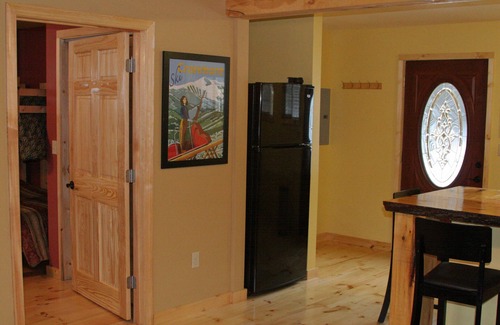 Brand new 1 bedroom 500 sqft unit with white pine floors and post and beam accents, sleeps 4 comfortably, 5 max, bedroom has a king sized bed and bunk beds, open plan living room / kitchen, with pull out queen sized sleeper sofa, flat screen tv, wood slab breakfast bar, fully applianced kitchen, 1 bathroom with shower, cable TV and internet included. Covered porch on front, deck on back. Plenty of parking