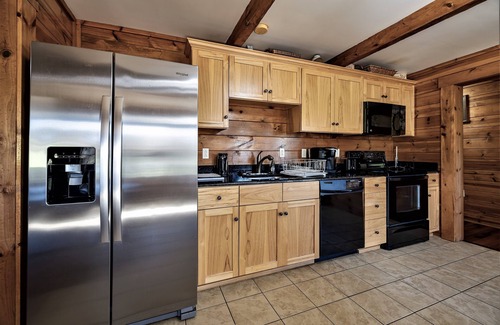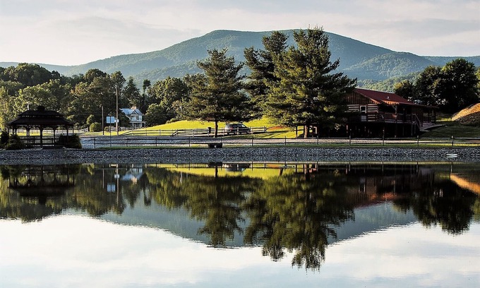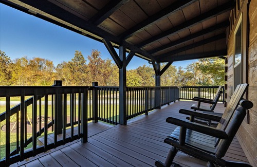From the covered wrap-around porch, which is equipped with log rocking chairs and a huge gas grill, you can take in the spectacular views of the surrounding mountains. The adjoining open deck features a luxurious 6-person hot tub. The backyard features a fire pit, a log style swing, and log bench sitting, all of which are excellent options for unwinding while soaking in the serene setting. In addition, the Mare House features a waterfront view of the one-acre fishing pond that is stocked with fish as well as a communal gazebo that guests can use for special events.