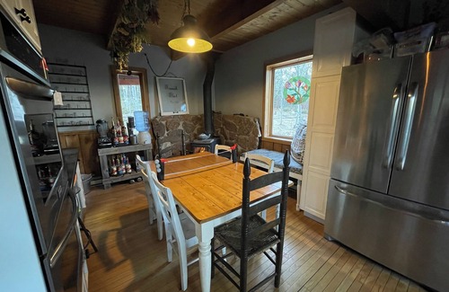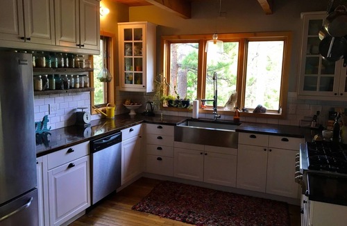 This is a private rustic home, with clean finishes and an open farmhouse appeal. The heart of the house is a beautiful chefs kitchen with a professional grade gas cook top, large bar, farm sink, tons of counter space, any cooks dream! And just outside the doors are pristine hiking and biking trails. Come soak in the hot tub after skiing, snowboarding or hiking.