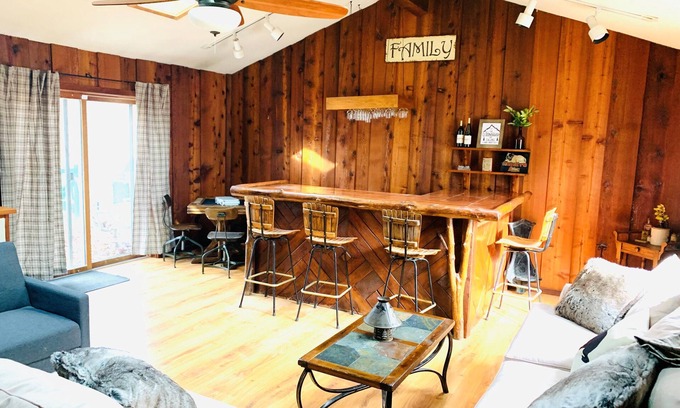 Beautiful, huge bar room with bar fridge, smart TV, Bluetooth speaker and card table.