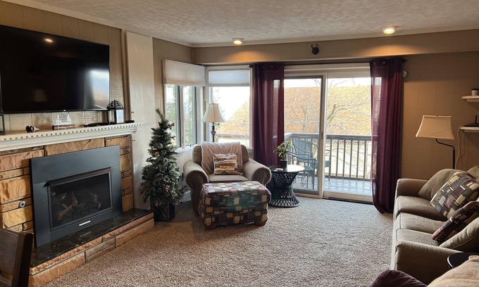 A perfect Beech Mountain getaway awaits! Walk down a few steps to the first floor two-bedroom / two bath condo that has everything you need. The condo has keyless entry. Enter to a mud room where you can hang your snow gear and other belongings. Then walk into the main living area that includes a dining table. Enjoy high-speed internet, Roku, YoutubeTV, and cable tv. Have a hot cup of cider on the balcony overlooking the gorgeous view, or watch the deer stroll by. A gas fireplace will keep you warm on a cold snowy night. A fully furnished kitchen will help you feel at home. The master suite has a queen bed and a view of the mountains. The second bedroom also has a queen bed. The sleeper sofa can accommodate extra guests. The condo also has a washer/ dryer. Towels and linens are provided. No A/C but there are plenty of windows to open to enjoy the cool mountain air in the Summer, and pedestal fans are provided should you need them. Easy access to everything Beech Mountain has to offer. Ski slopes and tubing are only one mile away, and it's a short drive to the Buckeye Recreation Center. Grandfather Mountain, Linville Falls, Blowing Rock, Seven Devils, and the Blue Ridge Parkway are all a short drive away. In winter months, 4WD or snow chains are recommended.
