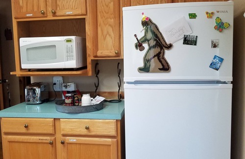 Mountain Time! has a Full Kitchen, Washer & dryer, big deck with propane BBQ, picnic table, glider & chairs and a propane FIRE TABLE for evening coziness! The Star gazing is mesmerizing! There is a Jotul propane fireplace in the living room for cool season coziness & electric baseboard heat. NO AC! We don't have it either. Fans, &the windows open.