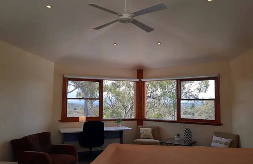 Large study retreat with elevated views of the ranges,