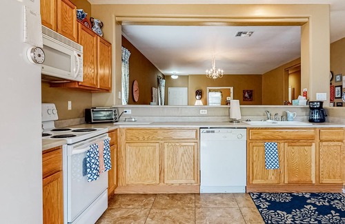 Welcome to your vacation! This family-friendly home brings the comfort while providing everything you need to unwind. Step inside and enjoy cool central air conditioning, with an additional ceiling fan in each bedroom to ensure peaceful rest. Kick back on the living room's sizable corner sofa, or recline in the brightly furnished backyard. There's always the grill if you feel like a vacation barbecue. The full kitchen can run support with provided cooking tools and full-size appliances. High-speed internet will help out with remote work and trip planning alike. Come together and enjoy one of the provided board games, then close the room-darkening shades for a peaceful night's sleep. Arizona style meets comfort in this pleasant neighborhood home.