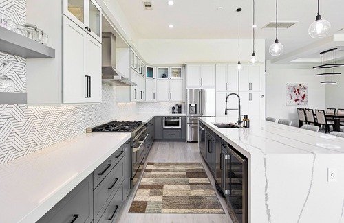 The property will be stocked with a generous initial supply of trash bags, paper towels, kitchen sponges, hand soap, dish soap, and toilet paper. The property is equipped with a specific quantity of bath and pool towels to accommodate the maximum occupancy of the home. The bathrooms are stocked with shampoo, conditioner, and body wash. There is also a fully equipped laundry room with a washer, dryer, and iron.