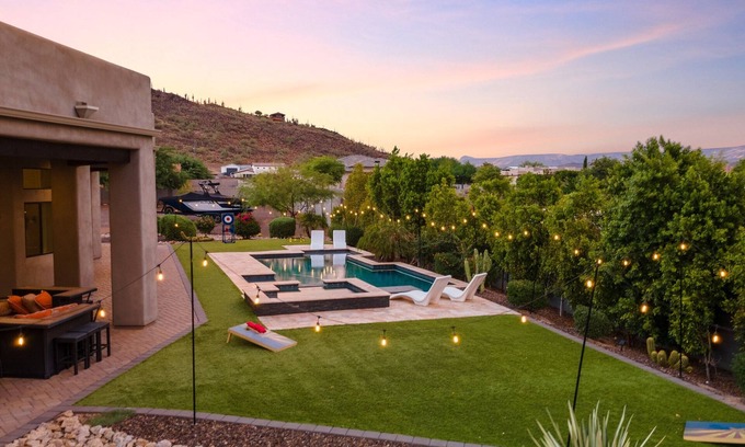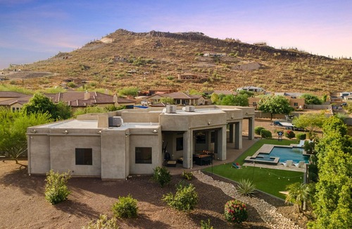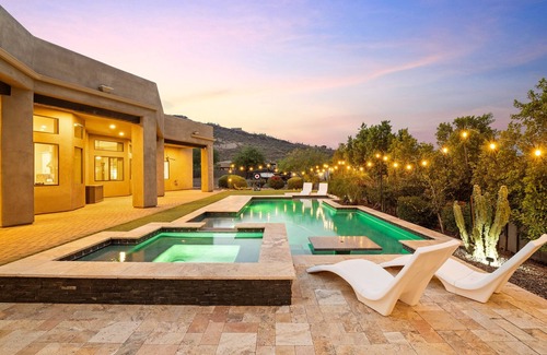 Our luxurious 5-bedroom retreat offers a perfect blend of modern comfort and natural beauty. Set against the stunning backdrop of the Phoenix mountains, this spacious retreat features a pristine pool and a relaxing hot tub—ideal for unwinding under the Arizona sun or the starry night sky.