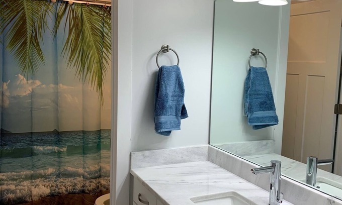 Fully equipped kitchen. Keurig machine and waffles available for your making. The bathroom has a bathtub/shower combo with separate toilet and mirror space. Surrounded by beautiful mountain views.