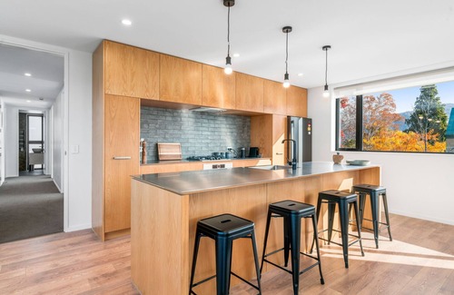 After long days of exploring the scenic surrounding area, you’ll love coming back to the contemporary furnishings, blended with rustic flair throughout the open-plan living area. Imagine kicking back on the couch with a Central Otago glass of wine in hand, while the electric fireplace provides the perfect amount of cosy ambience for everyone to enjoy.