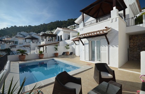 Charming villa consists of a ground floor comprising lounge, kitchen, dining room, 3 terraces to Eat and enjoy panoramic views. Lower floor where house a swimming pool with a terrace inviting idleness and 3 bedrooms, 2 bathrooms for 1 or 2 families. This 2004 villa is recently restored (2014). The pool terraces, everything is designed for perfect holiday. Near the charming village of La Herradura, Casa Paloma is located in a privileged holiday resort. Not far from Nerja and Almunecar lovers more city life.