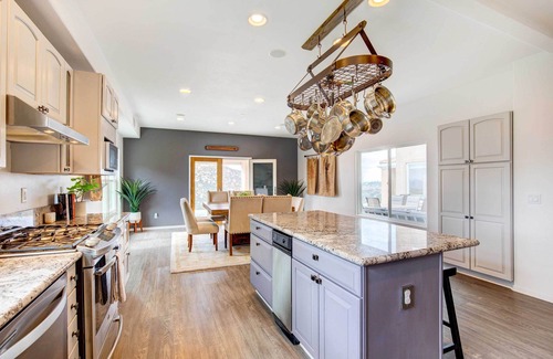 INDOOR LIVING: 4 Smart TVs, 2 sunrooms, pool table, wet bar, telescope, board games, books, desk workspaces, dining table & bar, wood-burning stove (wood not provided), jetted tub