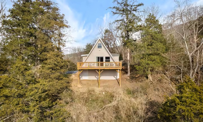 The space: Adorable A-Frame cabin that is newly renovated with views of the mountains and the river. The house is set into a hill and you feel like you are living among the trees from the deck. View your private river frontage on the beautiful Shenandoah River below.