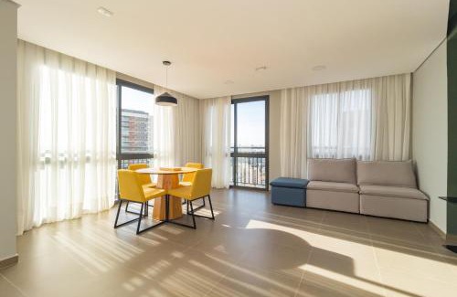 Movi Campo Belo in São Paulo provides accommodations with a garden, a terrace, and a shared lounge. Located in the Itaim Bibi District district, the property provides guests with access to a solarium. The accommodation provides a sauna, free Wifi throughout the property, and a 24-hour front desk. Each unit has air conditioning, a private bathroom, and a well-equipped kitchen including a microwave, fridge, stovetop, and kitchenware. The apartment complex offers certain units with city views, and the units come with a coffee machine. At the apartment complex, the units are equipped with a desk and a flat-screen TV. The apartment also features an outdoor swimming pool and a hammam for guests to relax in. Ibirapuera Park is 3 miles from Movi Campo Belo, while Tokio Marine Hall is 3.7 miles away. Sao Paulo/Congonhas Airport is 3.1 miles from the property.