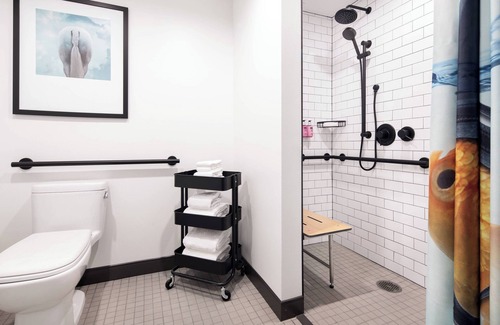 Moxy Louisville Downtown offers 110 accommodations with hair dryers and complimentary toiletries. Pillowtop beds feature premium bedding. 55-inch LED televisions come with premium cable channels and Netflix. Rooms have partially open bathrooms. Bathrooms include bathtubs or showers.