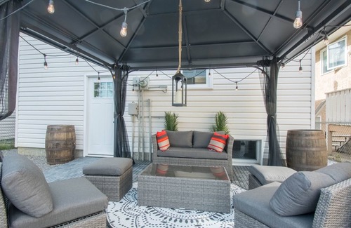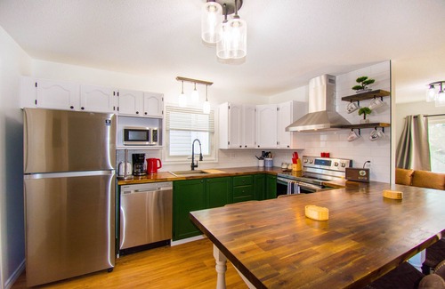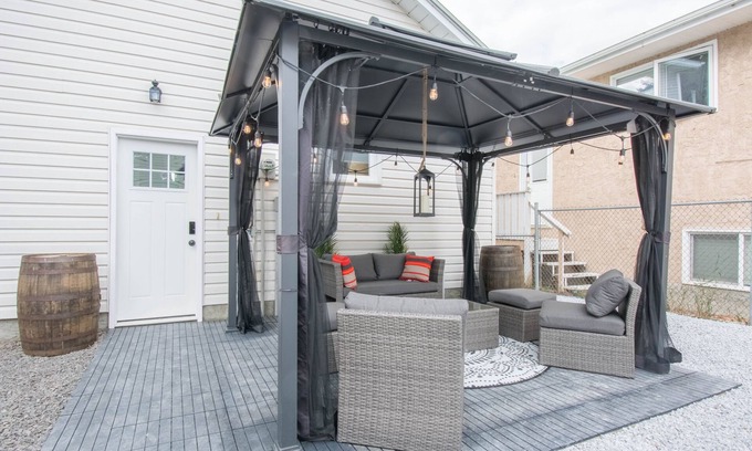 Mr. Weatherington's Lake Cottage is a centrally located four bedroom cottage located in Sylvan Lake, with room for up to 12 people. Only a short two-minute walk to the beach and lakeshore amenities, this cozy home is great for family and friends. A spacious backyard with a gazebo, couches, and fire pit, as well as a beautifully, fully-renovated interior, this place is sure to please! And we have foosball!