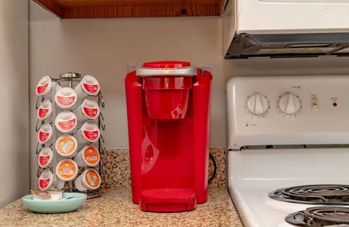Kitchen is fitted with everything you will need, including free coffee with the Keurig. Pots, pans, and cooking utensils included for your home cooked meals.