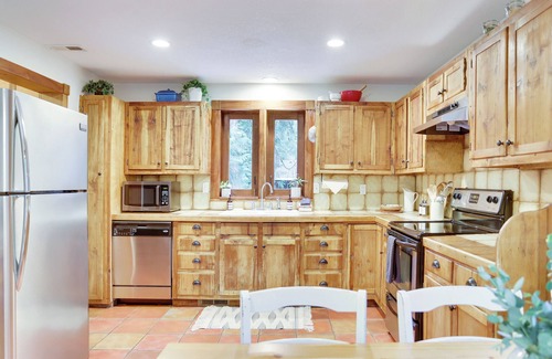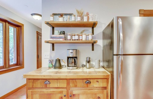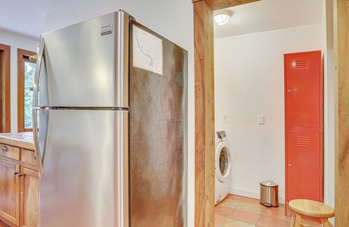 A picturesque European chalet tucked into a forested community sitting on the banks of the Sandy River, complete with a public pool and tennis court. Bigger adventures are just a 10-minute pedal away where the Sandy Ridge Trail System offers premiere mountain biking. Take a 20-minute drive to Government Camp and find all the skiing and hiking your heart desires. After an exhilarating day, slip back to the cabin and unwind in Pacific Northwest style. Relax in the skylight-covered hot tub; grill and dine al fresco; then, roast s’mores around the flickering firepit as the sun sets.
