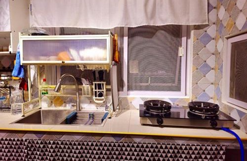 Guests enjoy free WiFi, streaming services, and a washing machine. The kitchen is equipped with a refrigerator, stovetop, and coffee machine. Additional amenities include a dining area, sofa, and tiled floors.Convenient Location