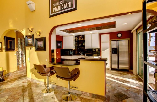 CASA ROCCA DEL AMORE is an outdoor entertaining Paradise that sleeps 8 adults comfortably in 2 California King Beds and 2 Queen Beds. And has room for more people with Large living room section sofa and additional chaise sofa for sleeping extra adults or children.
