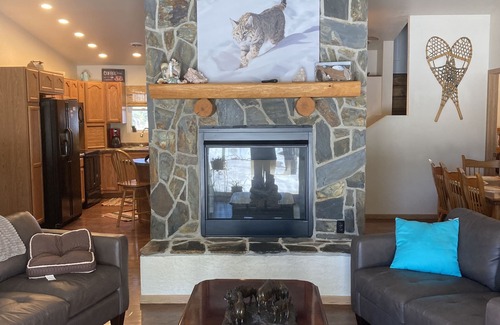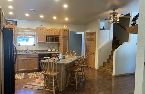 Muley Hill Ranch House has an attached two car garage. (Available by May 1st) The studio above the garage has its own outside entrance and a kitchenette. You can enjoy a great evening in the fenced backyard which includes a hot tub, seating area, and grill for your enjoyment. A playpen is also available. The main part of the house has an open kitchen/dining room/living room with a beautiful fireplace in the middle. The main part of the house has 3 bedrooms and 2 bathrooms. Sleeps 8-10 comfortably.