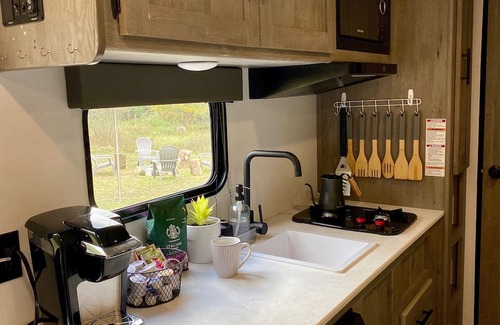 Mullen Ridge Happy Glamper, enjoy the beautiful outdoors with indoor luxuries! is located in Delton. Mullen Ridge Happy Glamper, enjoy the beautiful outdoors with indoor luxuries! provides accommodation, featuring Air Conditioner, Security/Safety, Bedding/Linens, among other amenities. This House features Air Conditioner, Security/Safety, Bedding/Linens, to make your stay a comfortable one.