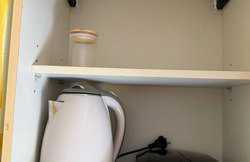Feel free to prepare a home-cooked meal with the stovetop and refrigerator, as well as the coffee maker, electric kettle, and lobster pot. Bathroom amenities include a hair dryer, towels, and toilet paper. Other amenities include bed sheets, an ironing board, air conditioning, and heating.
