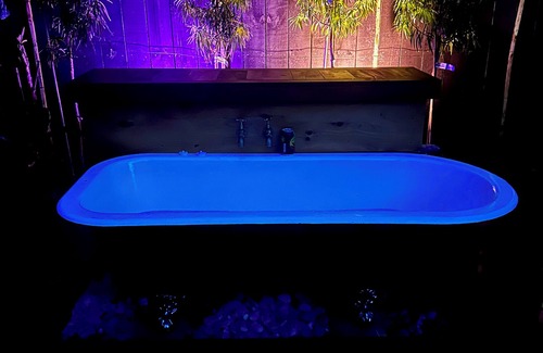 Escape to the Wild West coast to our tranquil surf shack. Beach access only a 20 minute walk, or 3 minute drive, enjoy one of the best Auckland surf beaches, the local bakery and cafe, golf course and bike trails. Quiet and peaceful, relax in our outdoor bath or shower after a surf. You wake to beautiful birdsong amongst our native coastal garden. The secluded outdoor bath & shower is a great way to unwind after a surf, with a glass of Chardonnay in hand.