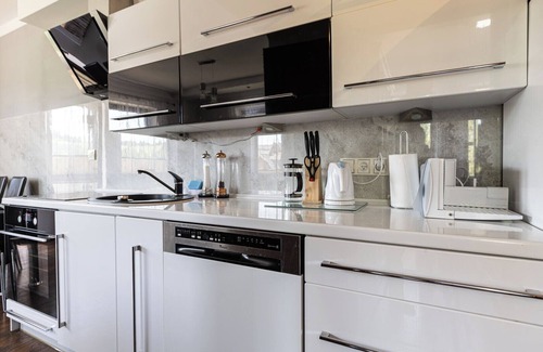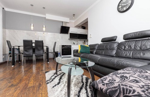 Murzasichle Serenity Stay Apartment features a living room with a sofa bed, a bedroom with a comfortable king-size bed, a sofa bed in the hallway, a kitchen, a bathroom, and a spacious balcony where guests can relax and enjoy a morning coffee or an evening glass of wine. Guests have access to a range of practical amenities, including free WiFi, cable TV, a washing machine, iron, hair dryer, dishwasher, induction hob, fridge with freezer, oven, Dolce Gusto coffee machine, kettle, and kitchen accessories. Guests can use the public parking outside the building, but parking spots are not guaranteed.
