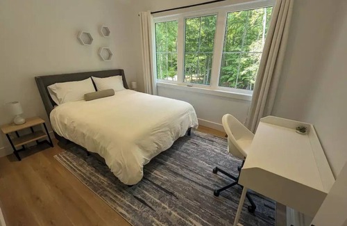 Relax with the whole family at this peaceful and private property on 5 acres of hardwood forest. A brand new build with lots of space and an open concept kitchen for entertaining. Large outdoor eating area in the screened in porch. An outdoor playground for the kids. Enjoy an easy walk to the clearing on top of the ridge for private stargazing. A 2min drive to Clear Lake Spa and Brewery. 5 more minutes and you are in the quaint town of Bala.