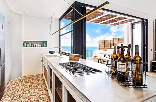 On the lower floor there are other two bedrooms, the suites with shower and two double beds one measures 180x190cm and the other one 160x190 with their private terrace and a unique sea view.