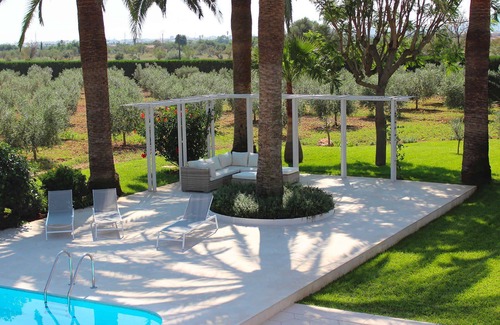 Just few step we are outside, in the covered loggia with a dining area for al fresco dinners, and where to admire the big grass garden all around the house, and enjoy a fresh bath in the swimming pool , there is also an outdoor shower, a spacious terrace with sunbeds and a chill area with sofas , the perfect place where spend hours of pure relaxation.