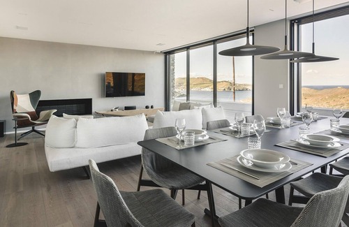 The upper level is home to the pool area with a heated infinity pool, with sun beds and shaded lounge areas, from where you can enjoy the unobstracted sea views. There is also a corner bar.