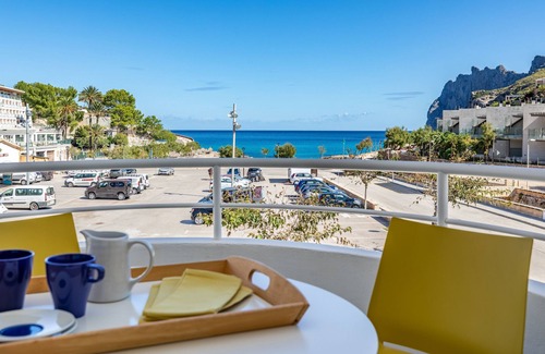 Rental property Ideal for families with children and for relaxation | Apartment for 2 - 5 people, sea and mountain views, beach at 50 metersThe 3 bed apartment Alba Mar Gran is located in the picturesque bay of Cala San Vicente. The apartment has direct sea view. Mar Gran is completely equipped and furnished in a Mediterranean modern style, light and friendly. The apartment disposes of 2 double bedrooms, 1 single room, 1 bathroom and 1 showerroom. The fully equipped modern kitchen is open towards the living area and a perfect site to prepare family diners. The living area has a confortable sofa, dining table and seats up to 6 persons. From the kitchen you step out to a little round balcony with round table and seats up to 4, and from the living area you step out to another little balcon with a round table and two confortable chairs. There is a public parking place next to the house where you can leave the car without any charge. In Cala San Vicente, you will find everything that you need: beautiful beaches and bays, restaurants, bars, supermarkets, newspaper store, a barbershop,bike rental, etc. The beaches of the bay are ideal for families with children. Friendly and peaceful ambiance. Cala San Vicente is about a 5 minute drive from Pollensa and Puerto Pollensa. The beaches of Formentor and Puerto Pollensa can be reached just as quickly. You will find a large selection of restaurants of all types and categories in the cities of Cala San Vicente, Pollensa and Puerto Pollensa.Cala Sant Vicenç - the village and its beaches: Cala Sant Vicenç, once a small fishing village, now grown into a sophisticated bay village but still retaining its original charm and character. It is very popular for its beautiful beaches. Cala Sant Vicenç has two lovely bays with beautiful clear blue waters whichs is ideal for snorkelling when the sea is calm. The first bay is Cala Barques and the second bay is Cala Molins. Cala Barques, is a sandy bay with good facilities (restaurants and sunloungers), however, quite busy. The second bay, Cala Molins, is sometimes a little quieter, it is a sandy bay with best facilities (beach bar, restaurant and sunloungers). Both bays dispose of a life guard in summer. There are two smaller bays, Cala Clara (very small sandy beach next to Cala Barques) and Cala Carbó (no sand, stony beach with pebbles) next to Cala Molins. The beautiful beach of Cala Molins is ideal for any ages and suitable for families with children.