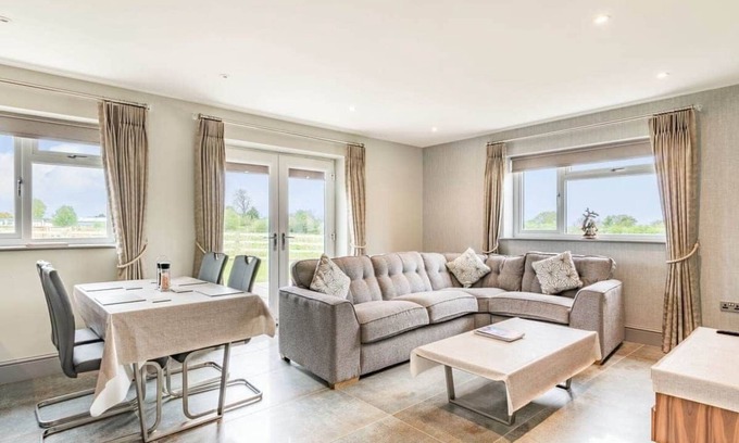 The second bedroom contains two lovely single beds and also enjoys the benefits of a modern en-suite and a Velux window.The main living area contains a beautiful, modern kitchen, dining area and a sumptuous sitting area with 40 inch, wall-mounted TV, the whole room is bathed in a lovely light from the three Velux windows giving a bright and cheery feeling to this delightful room.