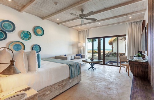 At Mystique Holbox by Royalton, A Tribute Portfolio Resort, spend the day on the private beach where you can enjoy snorkeling, then return for a meal at one of the hotel's 2 restaurants.