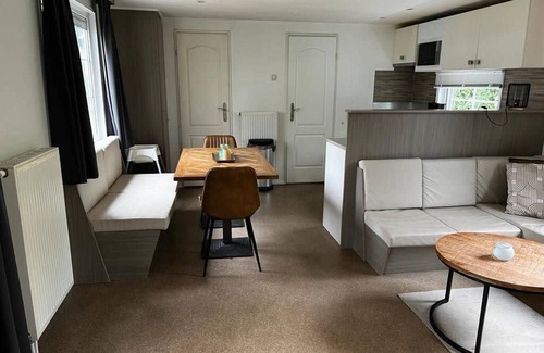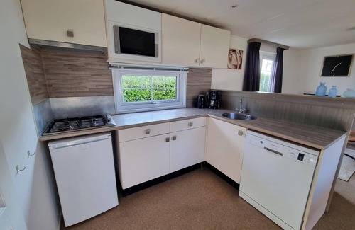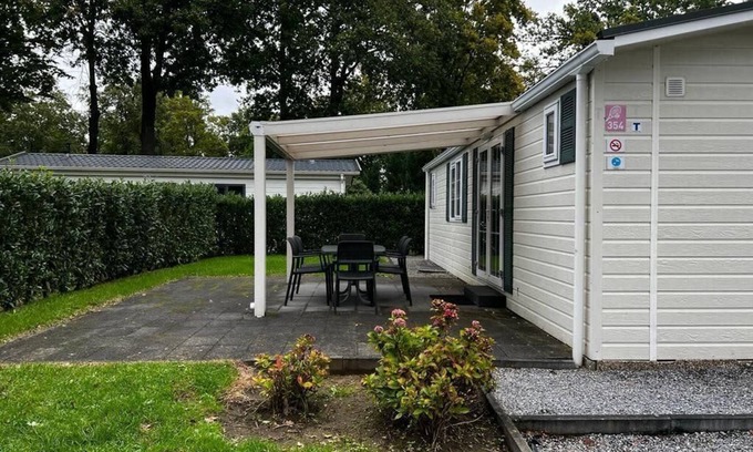 Berkel 6 is a detached chalet that is equipped with all conveniences during your stay. It is ground floor and suitable for a maximum of 6 persons. In the living room you will find a sitting area with television, a dining area and a kitchen with a microwave, water boiler and coffee maker. The chalet has 3 bedrooms, 2 bedrooms with 2 single beds and 1 bedroom with a bunk bed. The bathroom has a toilet, shower and washbasin. Berkel 6 borders on a furnished terrace. You can park 1 car at the chalet and you have free Wi-Fi at your disposal.